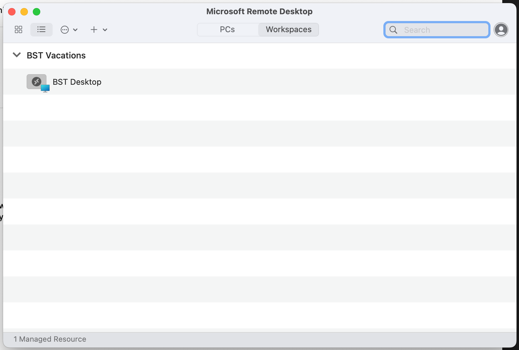 - After a few seconds the workspace should show the Remote Desktops you have access to.